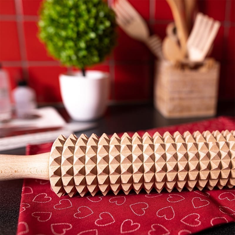 En traditionell kruskavel tillverkad i tåligt bokträ. Perfekt när du bakar knäckebröd eller andra bröd där du vill få ut luftbubblor ur degen. Den krusade ytan ger både struktur och hjälper till att fördela degen jämnt.