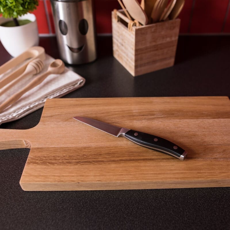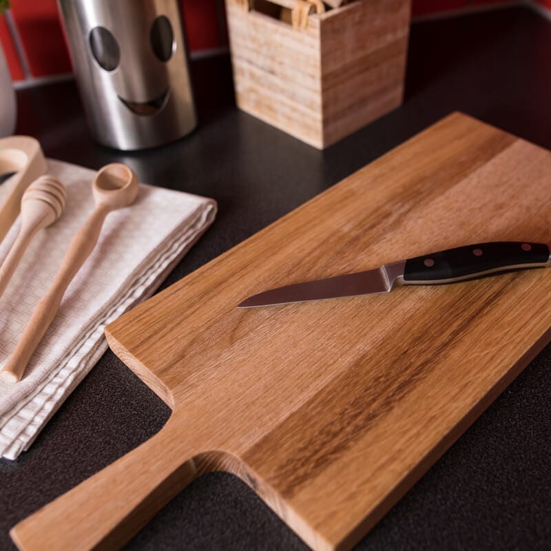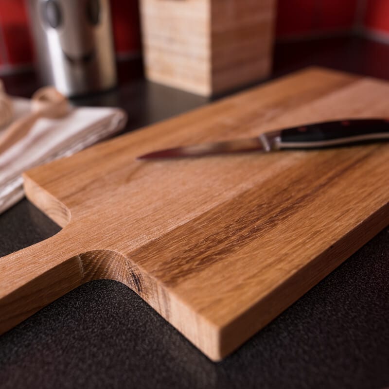 Den oljade ytan framhäver ekens naturliga struktur och färgtoner samtidigt som den skyddar mot fukt och fläckar. Perfekt som allround-bräda i köket eller till dukningen.