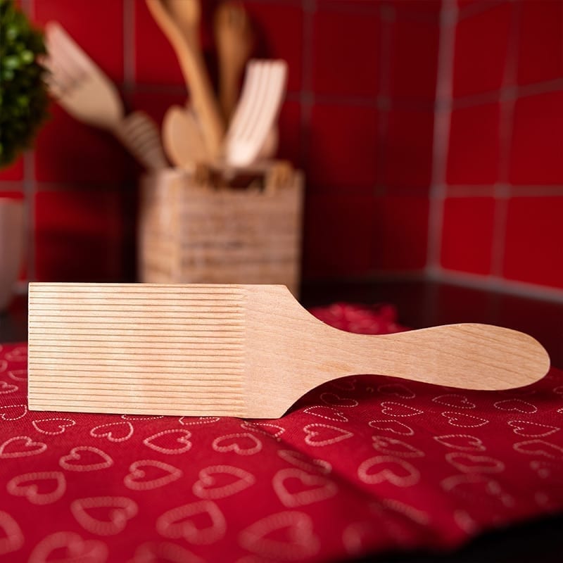 En klassisk smörspade tillverkad i ljust, fint björkträ. Den räfflade ytan gör det enkelt att skära och breda smör, färskost eller andra pålägg utan att de fastnar.